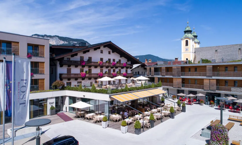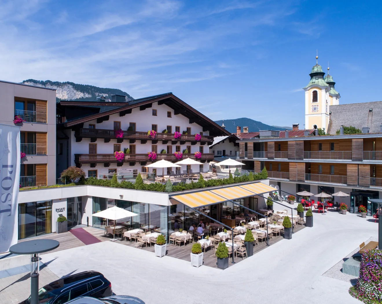 Das Hotel & Wirtshaus Post liegt im quirligen Zentrum von St. Johann in Tirol – dort, wo der Ort am lebendigsten ist. Umgeben von Bergen, Natur und Möglichkeiten für jeden Geschmack: Wandern, Biken, Skifahren, Flanieren, Genießen. Ein Wirtshaus mit Haube, ein 4-Sterne-Hotel mit stilvollem Wellnessbereich, Seminarräume für kleine wie große Ideen, die Postbar für besondere Momente und der Postmarkt für feine Dinge zum Mitnehmen – alles unter einem Dach. Ein Ort, der verbindet: Genuss, Erholung, Inspiration – und das mitten im Geschehen. Willkommen bei uns im Hotel & Wirtshaus Post. Bis bald!