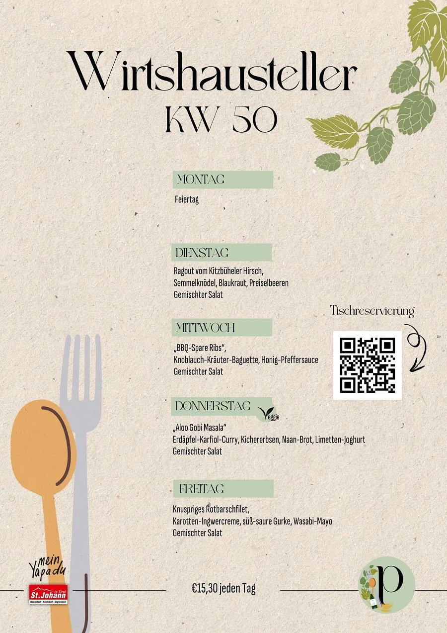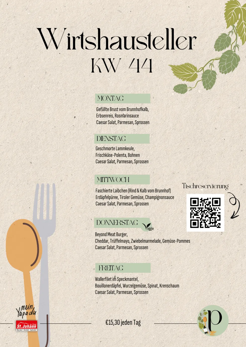Der Mittagstisch in St. Johann in Tirol Wirtshausteller Wirtshausteller PDF Newsletter Anmeldung Möchten Sie wöchentlich über den Wirtshausteller informiert werden? Für den Wirtshaus-Email-Newsletter anmelden. Galerie>Das WirtshausThe TavernVärdshuset